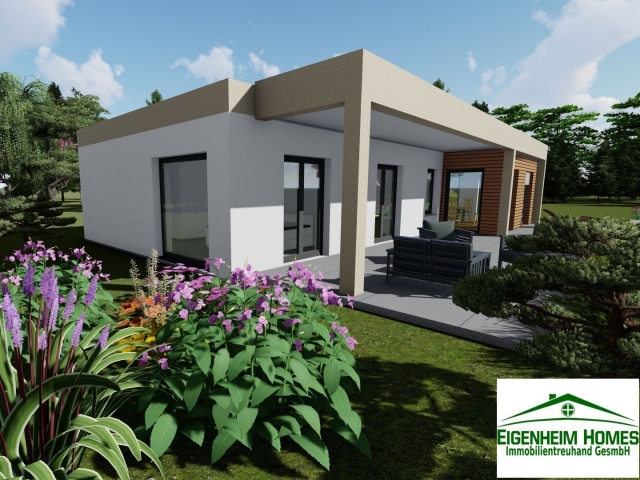 Mit 95 Quadratmetern Wohnfläche auf einer Ebene - 2 Schlafzimmern, 1* WC, Bad Vorraum, Speise+Technik, grosser Wohn-Ess-Kochbereich - bietet das Haus genügend Raum für Sie.